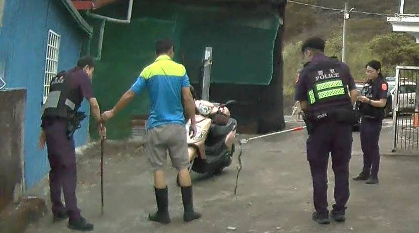 蛇闖廚房!關山警變身「捕蛇達人」 臭青母釋臭全場驚呼:名副其實。(圖/翻攝)
