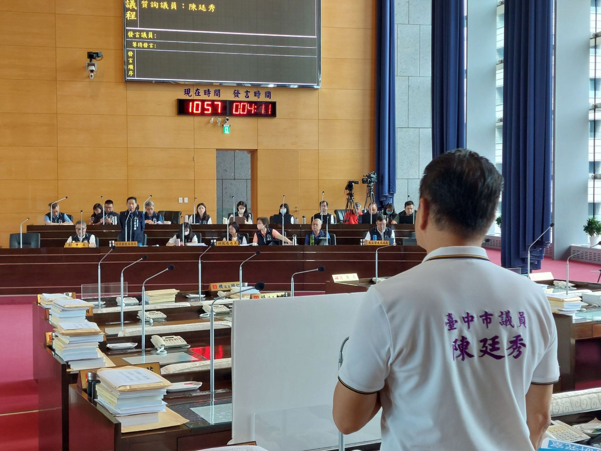 ▲ 台中市無黨籍議員陳廷秀,於今(20)日議會「財政經濟」業務質詢實景。(圖/記者游穎達攝)