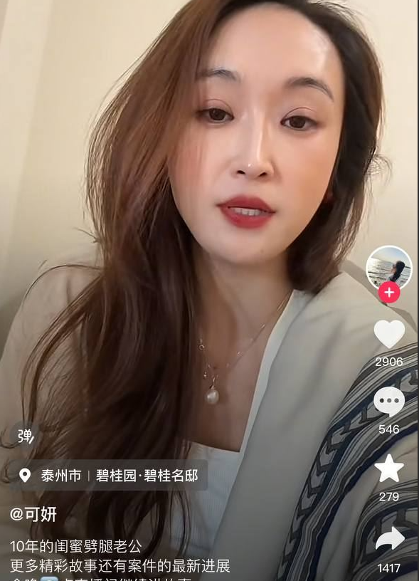 江蘇泰州緋色服裝店老闆娘可妍,近日在網路上高調公審其閨蜜、服裝店前員工,聲稱老公受其勾引與其出軌,還說沒被抓姦在床小三就死不承認。