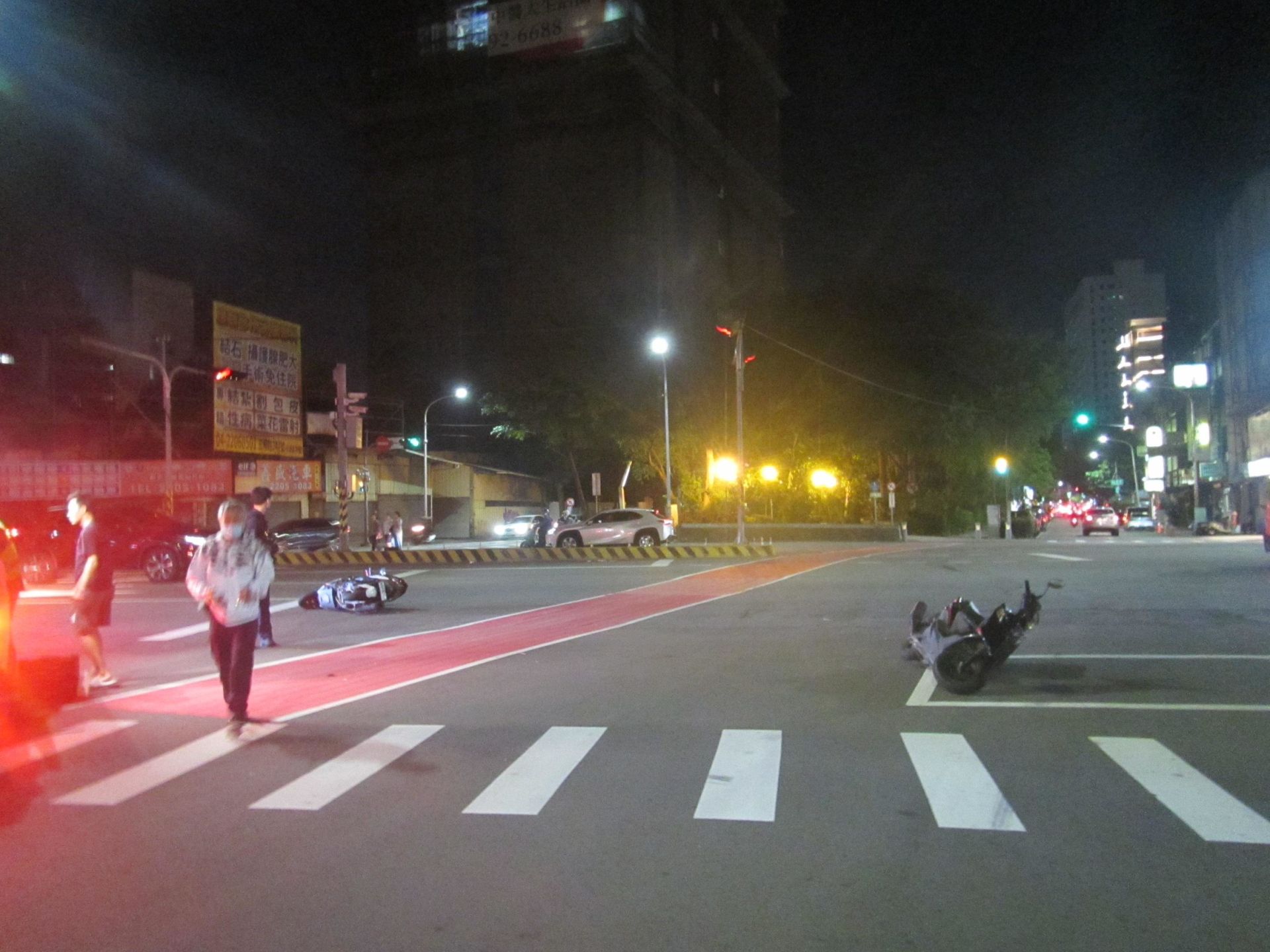 台中市警二分局表示,昨日19時11分許獲報,中清路與育德路口發生交通事故,造成兩名騎士手腳擦挫傷,警方到場後立即協助處理事故與交通疏導。初步了解,27歲林姓女子騎機車自美德街沿中清路慢車道往英才路方向直行;28歲陳姓女子同樣自美德街方向沿中清路慢車道行駛,行經事故地點時右轉進待轉區,雙方不慎相撞摔倒受傷,全案已調閱相關事故影像畫面,以釐清事故原因。