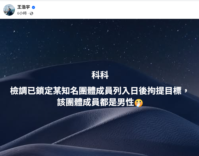 閃兵案燒不完!王浩宇臉書爆新一波拘提 傳偶像團體男星恐難倖免.(圖/翻攝 王浩宇 臉書)