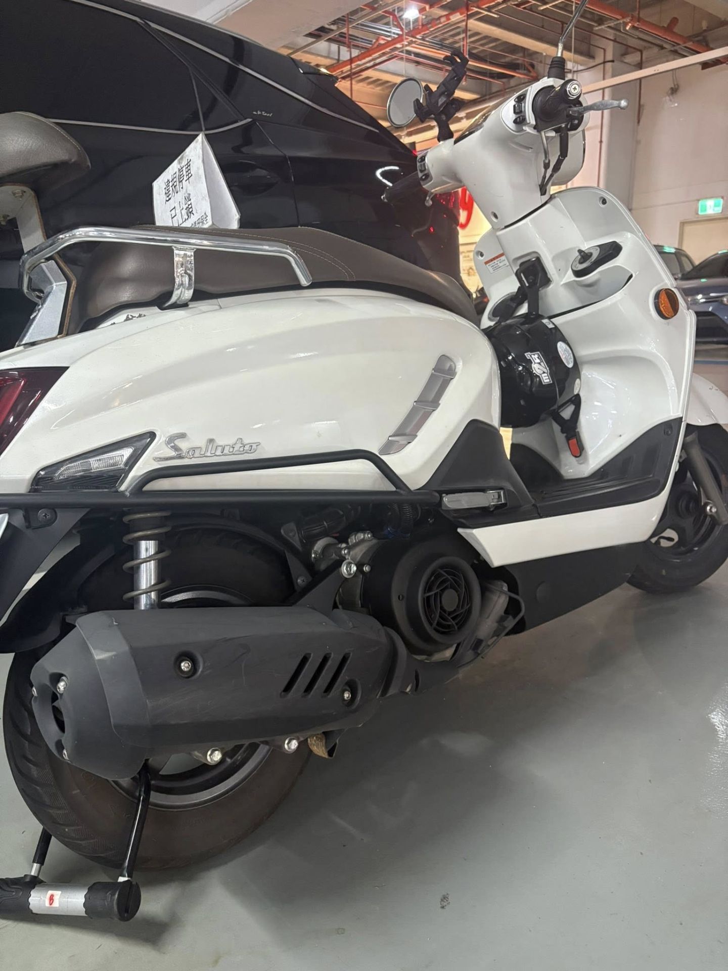 機車誤停汽車格被上鎖!巨城百貨硬起來 網笑:這台「自我認同四輪」.(圖/翻攝 新竹大小事 臉書)