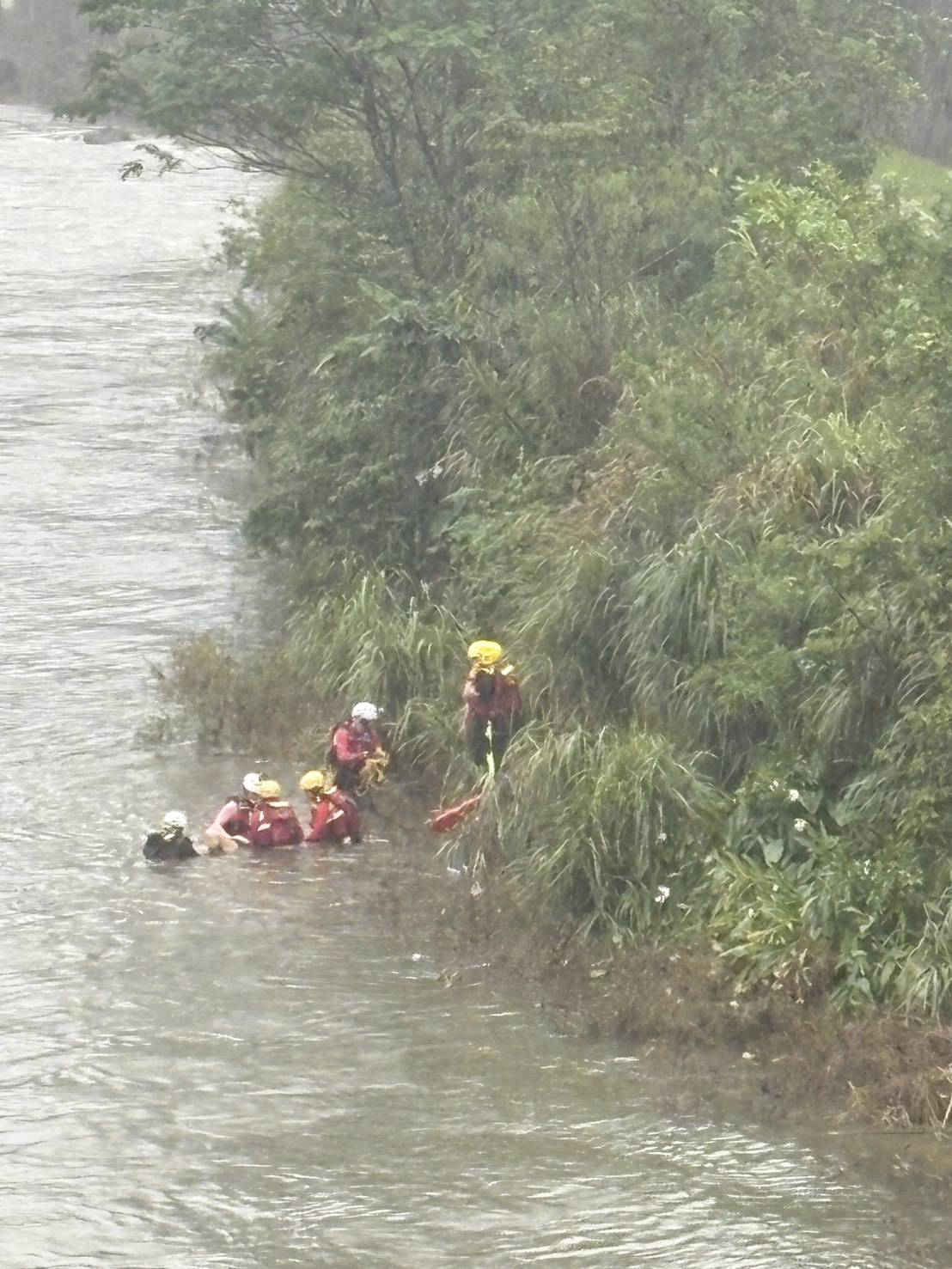 消防隊員尋獲落瀰水女子遺體打撈上岸。翻攝畫面