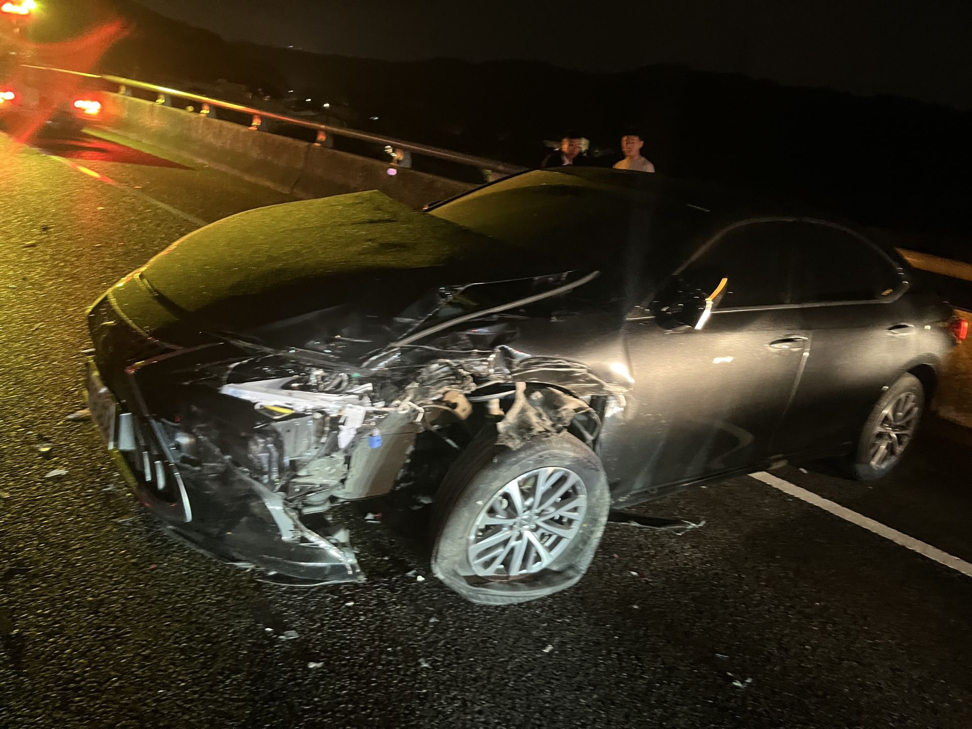 【Lai傳媒、記者爆料網/周庭慶/桃園報導】國道1號五楊高架道北向46.8公里桃園路段昨(4)日發生連環車禍,國道警察第一大隊接獲通報,立即派遣員警前往調查處理。經查,29歲黃姓男子駕自小客車行經國該路段,因前方2部小客車追撞,黃男煞車不及車輛向右閃避時擦撞到前車,後方25歲葉姓男子駕駛的小客車見狀亦向右閃避後追撞黃男車輛,葉男車輛失控打橫停放於外側車道,所幸各車均依規定繫上安全帶,無人受傷。