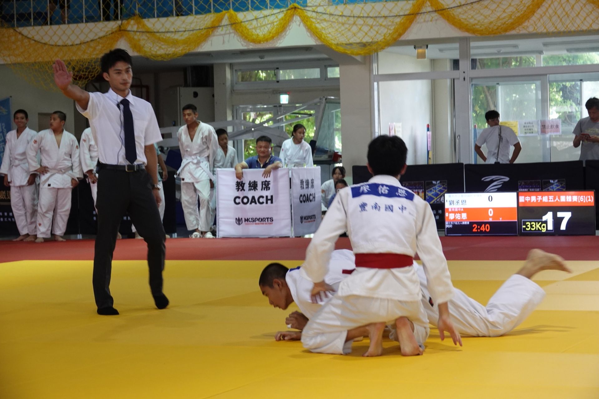 今日賽事,運動局專門委員白峨嵋、台中市體育總會執行秘書李俊秀、台中市體育總會柔道委員會主任委員魏耀亮及總幹事蔡勝良、柔道男神楊勇緯及金牌教練劉文等均到場共襄盛舉。