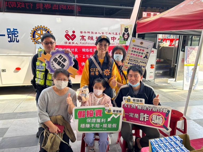 分享反詐識詐觀念│仁武警結合德光獅子會及富祥汽車舉辦捐血反詐騙活動