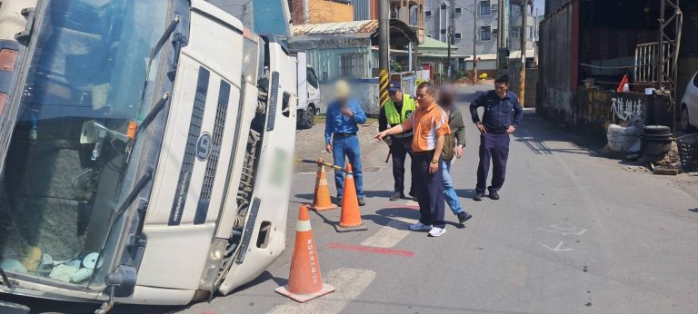 混泥土預拌車突遭路面塌陷!湖內警速到場處理 幸無人受傷