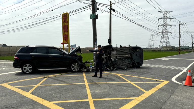 阿蓮巷道口車禍 │兩部自小客擦撞導致翻覆 湖內警速達現場處理
